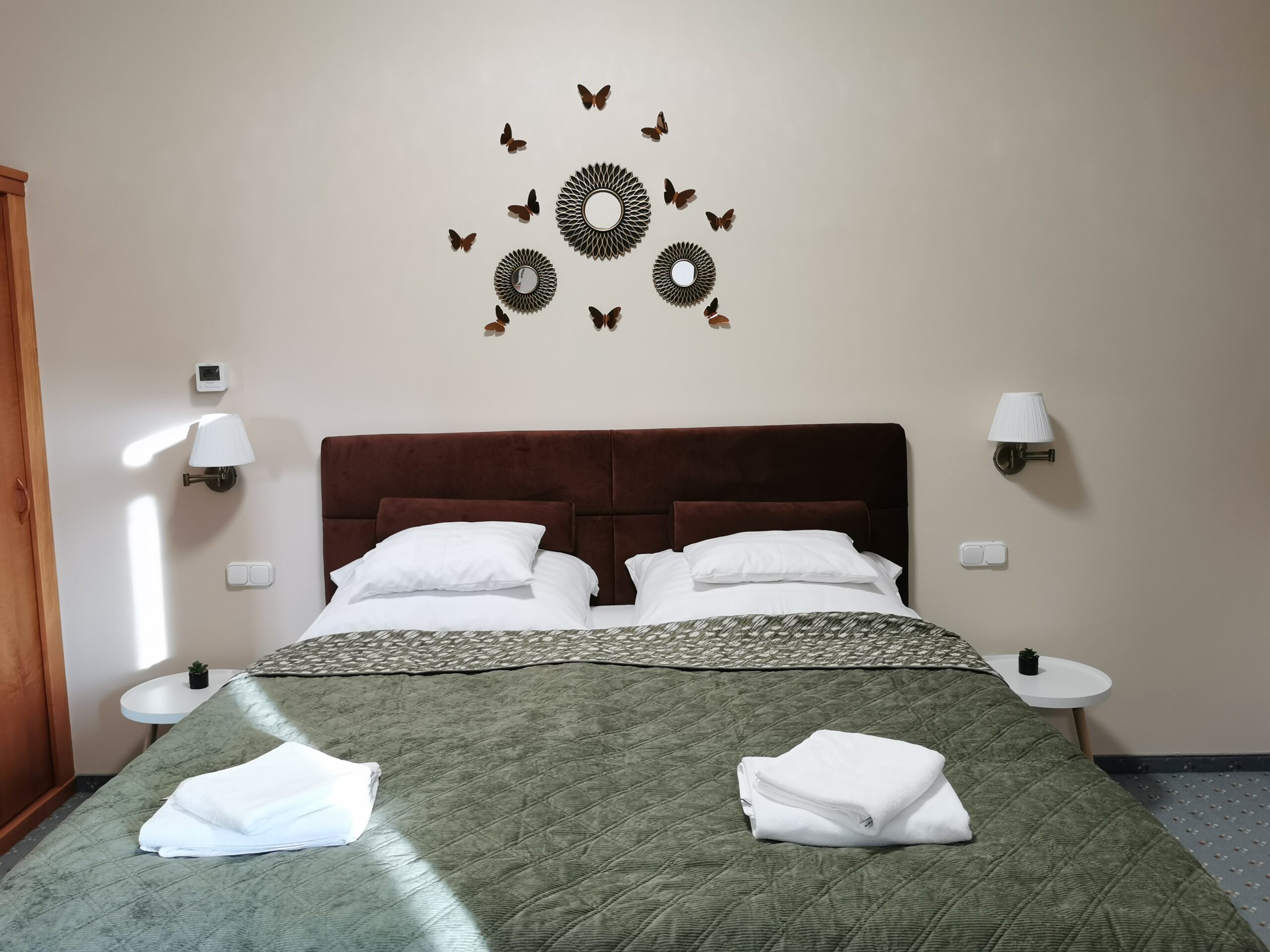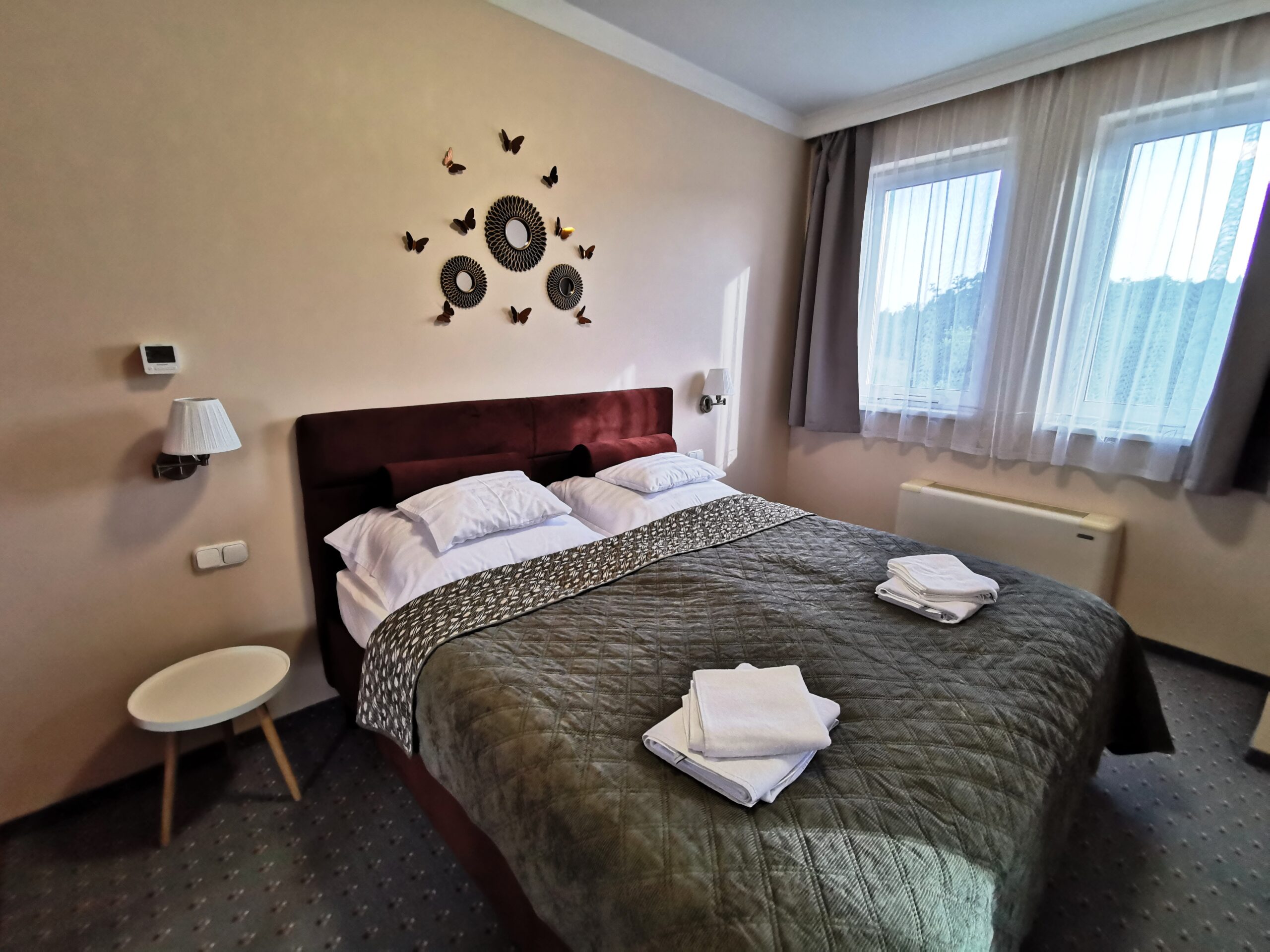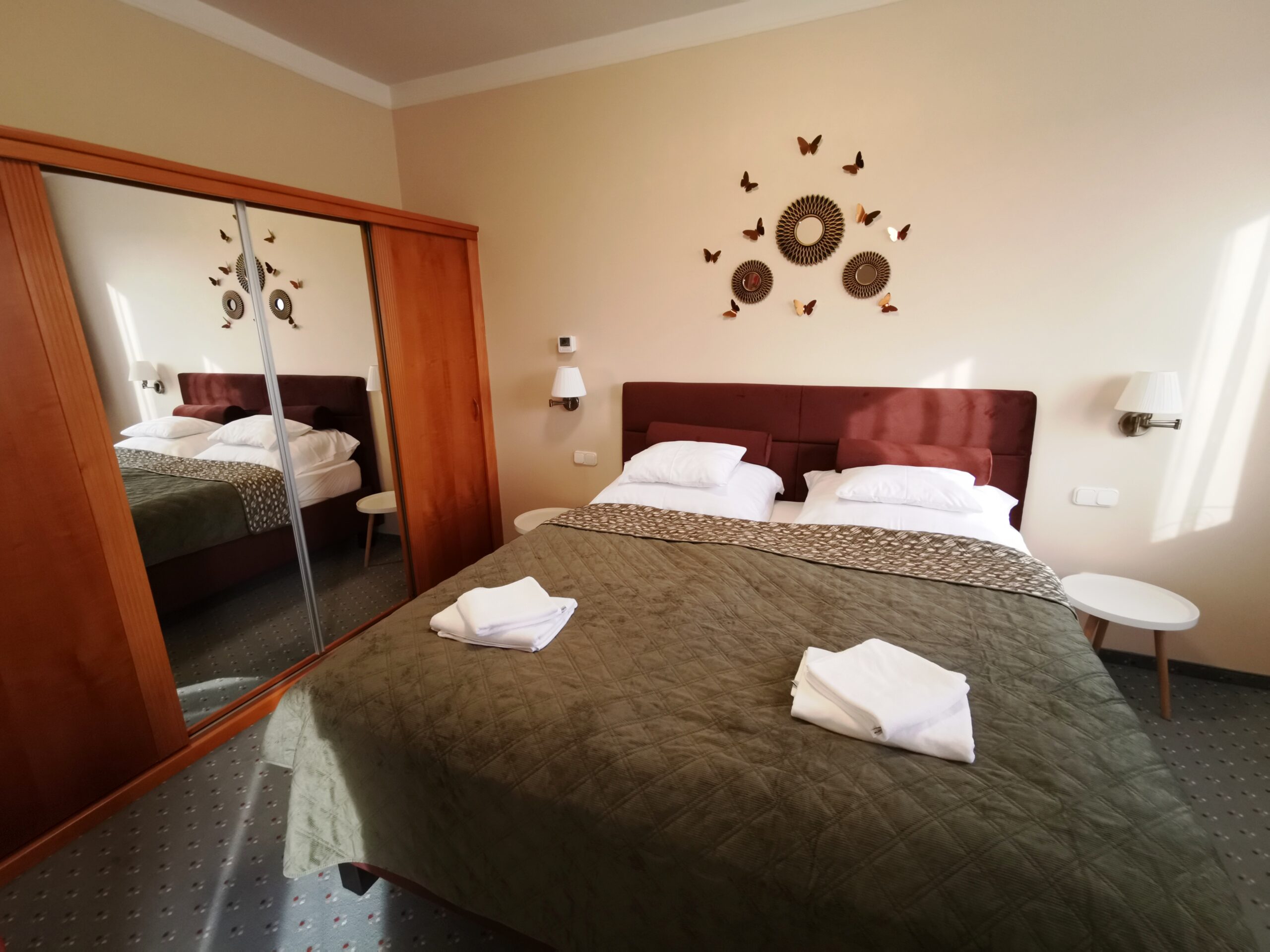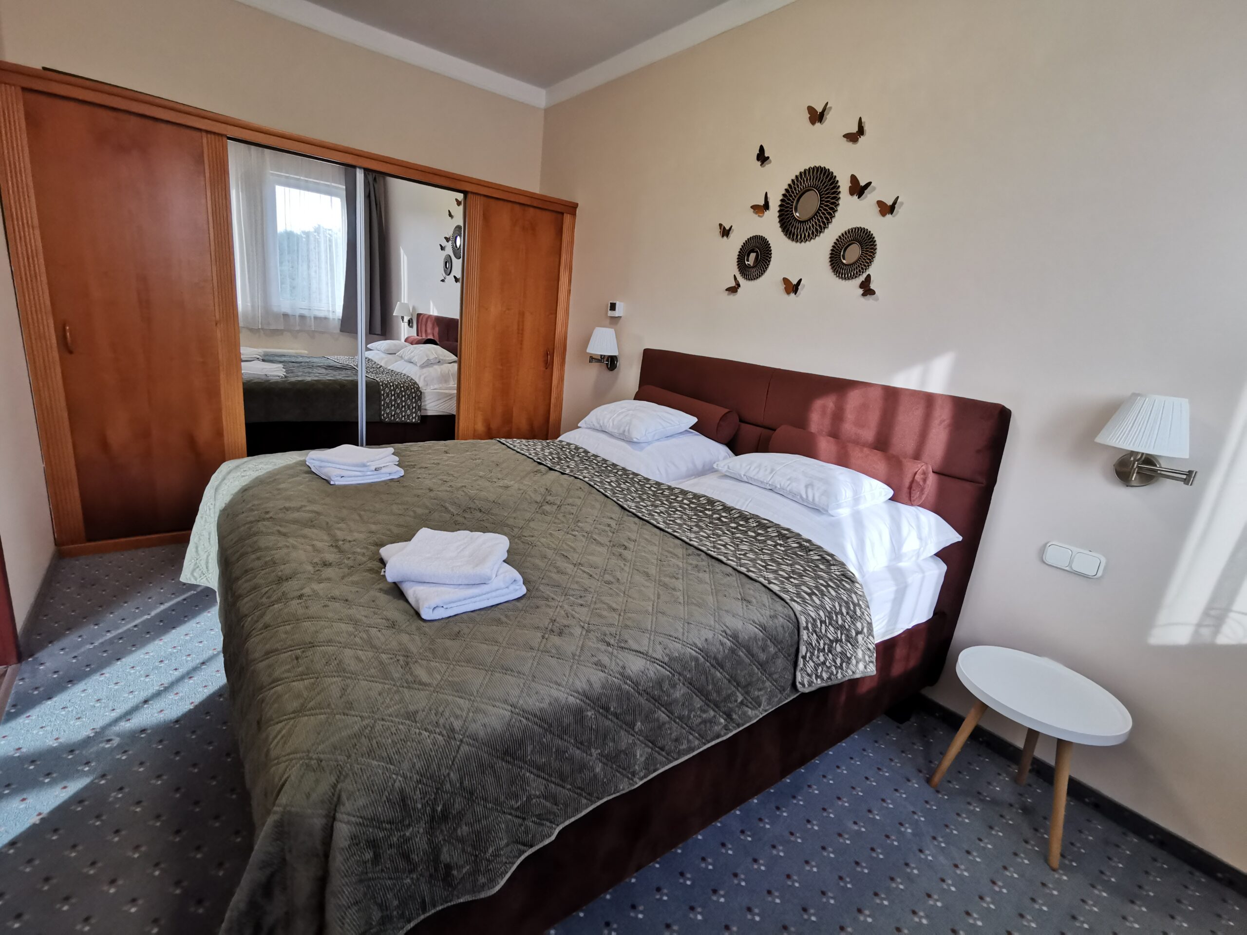 Hálószoba A hálószobában egy kényelmes franciaágy, valamint egy hatalmas tükrös beépített szekrény található